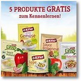 Bestelle jetzt bei Gefro völlig kostenlos und unverbindlich ein Produktpaket mit 5 Gefro Artikel. Im Paket enthalten ist eine Gefro Suppe, eine Bio Würzmischung, eine Sauce Hollandaise, Sauce Bolognese und eine Gemüsecremesuppe. Teilnehmen können alle Personen, die noch nicht Kunden von Gefro sind.