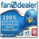Mit FanDealer kann man Geld mit seinen Accounts bei Sozialen Netzwerken (Facebook, Twitter etc.) verdienen. Die „Ware“ die verkauft wird sind die Likes, Follows und +1 für die jeweilige, auf Fandealer vorgestellte Website. Für jedes “Gefällt mir” bekommt man 1 – 5 Coins. Jeder Coin hat einen Wert von 0,02 Euro und ab 10 Euro (500 Coins) kann man sich sein Guthaben auszahlen lassen.
