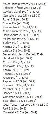 Feiner Tabakgeschmack, gemischt aus 7 Tabak-Sorten. Mit leichtem Unterton von getrockneten Tabakblättern, holzigen Nuancen und eine würzige Note schliesst diesen Tabakgeschmack ab